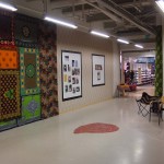 As a part of the exhibition is Karoliina Halsti-Ndiaye’s installation We have a message – Suñu bat. Based on a project between her and girl groups of a Senegalese NGO, it shows how textiles can be used as a channel of communication in the local community. In the project, the girls were encouraged to draw pictures and design patterns that would enhance awareness about children’s rights. Some of the drawings were put together to prints and printed on textile that can be used in campaigns and NGO activities inside the community.